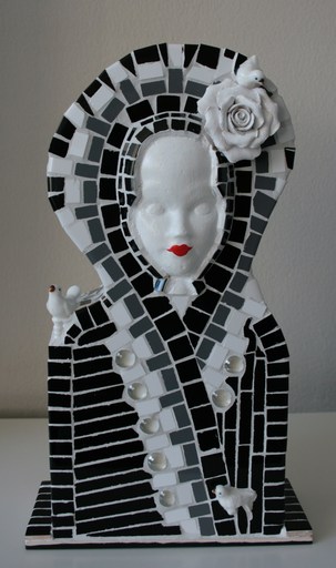 Mijn mozaïeken worden opgebouwd uit keramiektegels en afgedankte materialen. (servies, kralen, poppen etc.)Voor mij een feest om deze te recyclen en de waarde ervan terug te halen.